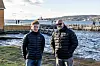 SKUELYSTNE: Elev Simen Fjørtoft og kjørelærer Øyvind Ulekleiv ser hangarskipets ankomst fra Hvitsen.Foto: Joel Nziza, Forsvarets forum