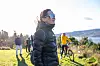 Ved Veisvingbatteriet i Drøbak er det mange mennesker samlet for å beskue krigsskipenes ferd gjennom fjorden. Ei av disse er Elin Rørvik som tidligere har jobbet i Forsvarsstaben, nå pensjonert.