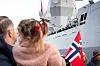 TILBAKE: KNM Roald Amundsen ankom Haakonsvern Orlogsstasjon, hvor besetningen fikk møte familier og venner igjen.Foto: Edward Valentin Coates, Forsvaret