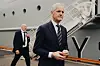 ØKT FORSVARSPRODUKSJON: Den norske regjeringen vil øke norsk forsvarsproduksjon. På bilde er statsminister Jonas Gahr Støre foran KV Jan Mayen.
