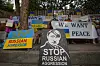 BANGKOK: Søndag samlet Ukrainerne i Thailand seg utenfor den russiske ambasade i Bangkok søndag for å vise sin avsky mot den russiske invasjonen.Foto: Sakchai Lalit