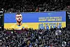 LONDON: før kampstart viste publikum, arrangør og spillere støtte til West Ham-spilleren Andriy Yarmolenko og det ukrainske folk. Før kampen mellom West Ham United og Wolverhampton varmet spillerne opp i drakter merket med«No To War » og det ukrainske flagget. Støtten til Ukraina har blitt gitt av utøvere i samtlige av helgens idrettsarrangementer.(Nigel French/PA via AP)