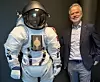 ROMDRAKT: Isabell i romdrakt sammen med sjefen for norsk romsenter Christian Hauglie Hansen. Hun har vært testkandidat for romdraktutviklingen til Nåva Space i snart 1,5 år.Foto: Privat