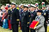 HØYTIDELIG: Snøen dalte da ambassadøren holdt tale under seremonien på Vestre gravlund, Oslo. Forsvarsattachéen Sébastien Chatelain (t.h.), og Garden som står bak.Foto: Henrik Sataøen, Forsvarets forum