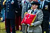 UTSMYKKET PUTE: Adjutant Mélanie Coelho hadde i oppgave å bære puten frem til Chatelain.Foto: Henrik Sataøen, Forsvarets forum