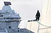 ENDESTASJON: KNM Roald Amundsen forlater HMS Prince of Wales (til venstre i begge bildene) i England, etter åtte måneder sammen.