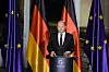 PRESSE: Tysklands statsminister Olaf Scholz holdt mandag pressekonferanse etter et nettmøte med de andre lederne for landene i G7-gruppen.