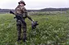 FINN ALLE SPOR: Mathias Goldmann og Koda sjekkar om menneske har passert i terrenget. Dersom ein person har gått over riksgrensa og inn i Noreg, kan hundane i Forsvaret lukte spora i opptil to døgn.