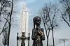 Hans Petter Midttun kjører mot elva Dnepr, som renner gjennom Kiev. Ved elva ligger Den ukjente soldats grav, til minne om falne under 2. verdenskrig, og der er også museet som markerer sultkatastrofen i 1932 og 1933. Tre millioner døde da Josef Stalin beordret avlingene ut av Ukraina. Vi skal til en del av dette museet – til ei lita, mager jente av stein. Hun holder en blomst.