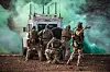 Foran oss kjører en hvit SUV merket med FN-emblemet på siden. Et øredøvende smell etterfulgt av en hvit røyksky gjør at bilen bråstopper. Dørene åpner seg. Ut kommer fire soldater som åpner ild med automatvåpen. En byge fra et lett maskingevær graver seg inn i den røde sanden. Soldatene kaster røykgranater og trekker seg raskt tilbake mens skuddene gjaller.