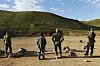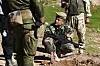 Ute i treningsområdet starter dagen med en leksjon i førstehjelp. To norske soldater viser hvordan man stanser blødninger ved hjelp av en improvisert torniquet. En flaske fylt med rød væske simulerer blodet. Via et plastrør som stikker ut gjennom uniformsermet på den ene soldaten, strømmer «blodet» fritt ned på den støvete marken.
