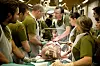 Operasjonsteamet har jobbet for å holde liv i den hardt skadde pasienten i nærmere to timer. Flere må stadig vekk tørke svetten under de glødende operasjonslampene. Men den største utfordringen gjenstår fortsatt.