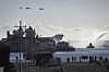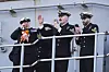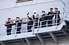 Idet lederskipet HMS Prince of Wales nærmet seg kaien, runget jubelen fra de fremmøtte, rotorbladene til ett Wildcat-helikopter og to Merlins, og signalhornet til hangarskipet.