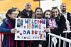 OPERATION HIGHMAST: Michelle (t.v.) får øye på kone, barn og hjemmelaget banner.