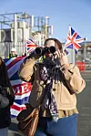 Tusenvis av familier og venner møtte opp på marinebasen på den engelske sørkysten for å se innseilingen, men hovedattraksjonen var det 284 meter lange britiske hangarskipet.