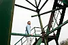 Flere trappetrinn mangler, og den grønne malingen henger i store flak. Gulvet gir etter når man legger vekt på det. Men Høisæter er bestemt på å komme seg til topps.