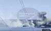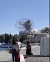 KRYM: Et bilde hentet fra en film lagt ut i sosiale medier fredag, viser en rakett i øyeblikket før den slår ned i den russiske Svartehavsflåtens hovedkvarter på Krym.Foto: Crimean Telegram channel via AP / NTB