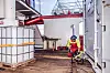 Det rødmalte forsyningsskipet er en del av rederiet Buksér og Berging, som vant anbudsrunden før øvelsen. På dekk står kontainere merket «Baltops 50».De siste to ukene har de nemlig forsynt norske korvetter og mineryddere under den maritime øvelsen.