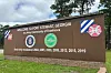 LEIR: Skiltet ved inngangen til Fort Stewart militærleir, der fem soldater ble såret i en masseskyting onsdag 6. august.