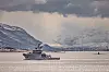Natt til mandag 10. mai skal en amerikansk atomdrevet ubåt legge til her ved Grøtsund havn. Forsvaret viser frem sine kapasiteter. KV Harstad på vei ut Grøtsundet.