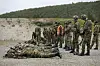 Major Helje Borud (nr. tre fra venstre) og hans mannskaper forberedte seg i forrige uke med blant annet skyting på kortholdsbane.