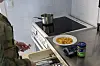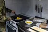 PESTOPASTA: En av soldatene i vaktlaget på Sola koker seg pasta til lunsj, i stedet for å spise det de fikk i messa.Foto: Maria Jølle, Forsvarets forum