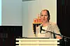 Camilla Guldahl Cooper ved Stabsskolen fotografert på et sted hun trives godt - på konferanse med gode kolleger.