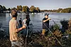 Det går akkurat for kranbilen å passere på den smale landeveien som leder inn til den lille innsjøen. Langs vannkanten nyter ukrainere solen.