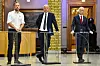FLERTALL SAMMEN: Audun Lysbakken (f.v.), Trygve Slagsvold Vedum og Jonas Gahr Støre dagen etter stortingsvalget.