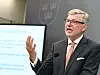 Försvarsberedningens leder Björn von Sydow presenterer sluttrapporten under et pressetreff. Foto: Jonas Ekströmer/TT.