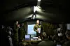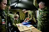 Drøyt seks mil lenger sør har troppssjef Malin Solberg Skogen laget en modell av øvingsområdet, med greiner, steiner og treningsutstyr. Glomma er et tau. Magasinene er kolonner. Det er midt på dagen. Kompani tre holder til på en skytebane utenfor Tynset. Frontlinja under øvelsen er to mil lenger sør. I forrige uke var det 18 minus og snø her. Nå er det plussgrader og gjørme. Løyntant Solberg Skogen er troppssjef for vedlikeholdsdelen av kompani tre. Hun forteller soldatene sine hva de skal gjøre: De skal ut av krigssonen.