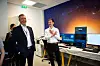 Alve Eldal, som er i ferd med å fullføre mastergraden i programmering og systemarkitektur ved Universitetet i Oslo, forteller forsvarsministeren hvordan konseptet fungerer. Ved hjelp av fire høyhastighetskameraer og ett for høyoppløselige bilder, skal det kunne dele et sanntidsbilde av informasjonen den samler inn – selv bak panserstål.
