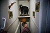 Veggene på Vesle Skaugum er fylt med plaketter og bilder fra Luftforsvarets fortid. I trappa ned til underetasjen står en utstoppet brunbjørn.
