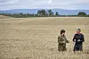 Synlige spor. Nå er det gått fire år. Vi er på det samme jordet som stridsvognene kjørte på i 2014. Hveten står gul og klar til innhøsting. Men i det bølgende teppet av korn er det også store flekker hvor ingenting vokser. Fortsatt er det synlige spor etter øvelsen.