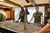 For å lære meir om moglegheitene har han invitert ein kompanisjef frå US Marines Rotational Force på Værnes. David Smith har gjort teneste i Irak, Afghanistan og Jemen. Han har lang erfaring med bruk av modellbord med sand. Han samlar masse i to store haugar. Eit kvitt band simulerer vegar, mens ein bygning blir konstruert av pappkort. Rundt bordet står fem kadettar.