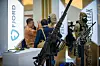 På et område på størrelse med én parkeringsplass i Oslo sentrum står Bø. Han har fått låne plass hos International Golden Group – Bøs distributør i Midtøsten. Her har han utstilt noen av produktene montert med våpen. Flere er innom og tar utstyret i nærmere øyensyn.