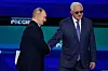 NÆRINGSLIVSBIDRAG: I en tale til russiske næringslivsledere torsdag, ba president Vladimir Putin oligarkene om å bidra til å finansiere krigen i Ukraina. Her tar han presidenten for den russiske industriforeningen Alexander Shokhin i hånda .