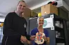Stjernekrig: Skipsprest om bord USS Bainbridge David Hicks, viser fram en av bokgavene til Sebastian (12) ved Grindbakken skole.