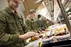 Han forteller at soldatene i utdannings- kompaniet oftest smører med seg lunsj og at de ikke alltid spiser middag i leir, fordi de ofte er på øvelse.