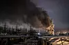 HYBRIDKRIG: Røyk spyr ut fra en kraftstasjon etter et russisk droneangrep i Kyiv-regionen, Ukraina, mandag 19. desember 2022. De siste månedene har Russland rettet angrep mot energiinfrastrukturen med mål om å kutte strøm og oppvarming til ukrainere i den iskalde vinteren.Foto: Felipe Dana/AP/NTB